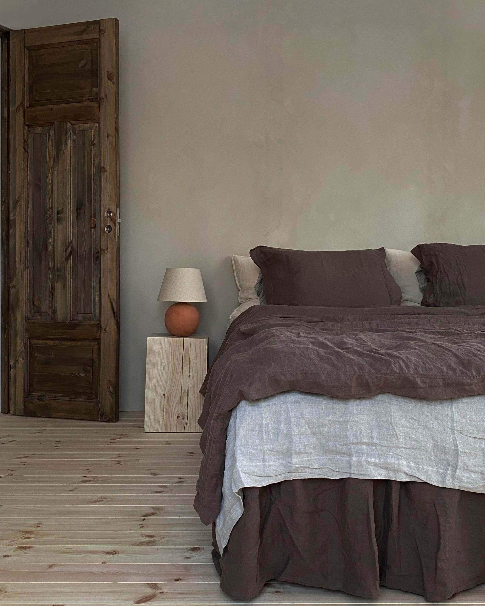 Smakfulla detaljer. De kalkade väggarna är så läckra mot linnetyget och furugolvet.