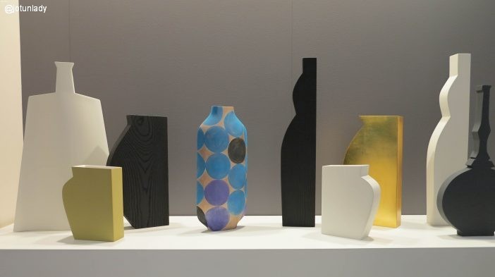 Mer keramik, detta hos Norwegian Presence, Anette Krogstad heter formgivaren, som visade sina alster i utställningen där Jotuns kulörer matchade hantverket fint.