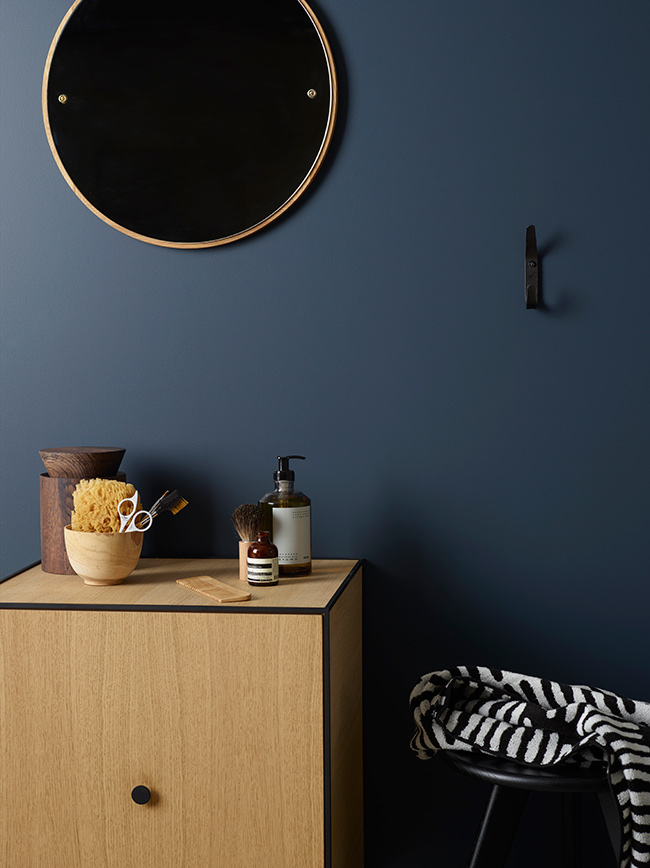 Piffa upp badrummet med en ny kulör och lite snygga inredningsdetaljer. Här har vi målat med LADY Aqua Våtrumsfärg i kulören LADY 9938 Naturligt Svart.